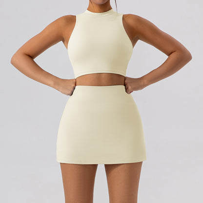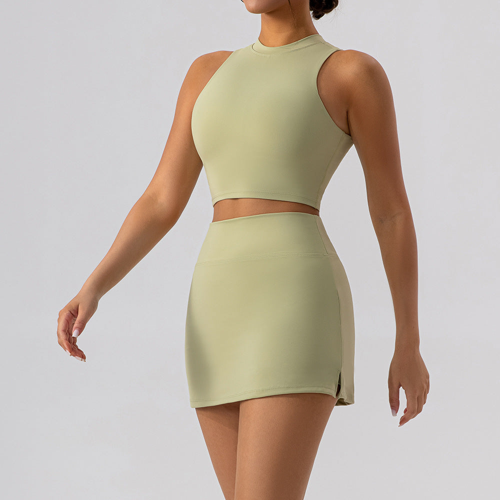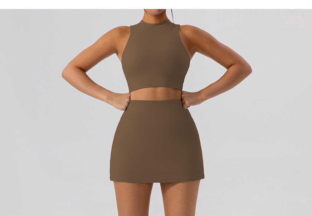 Ideal para los entusiastas del tenis o cualquiera que busque un conjunto deportivo versátil, este conjunto incluye una camiseta sin mangas y una falda corta que ofrece libertad de movimiento y una silueta favorecedora. Ya sea que estés jugando a la cancha o disfrutando de actividades al aire libre, nuestro conjunto de falda de tenis combina funcionalidad con simplicidad elegante, lo que garantiza que te veas y te sientas mejor dondequiera que vayas.